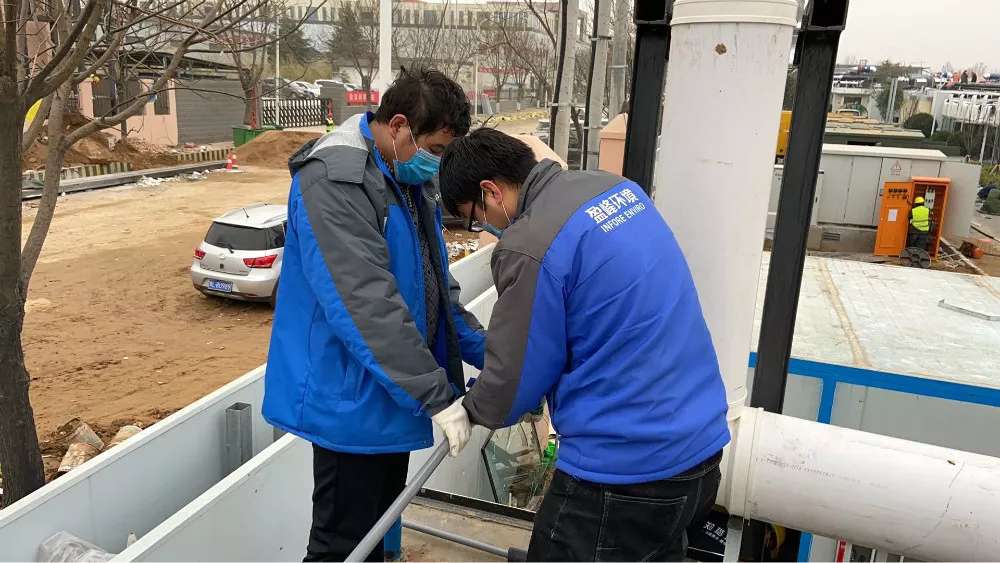 设备投入运行,两套一体站安装在医院隔离区外,总占地不超过4㎡,系统采用全封闭管路,保证维护人员的安全,可随时进行维护,确保监测数据准确。